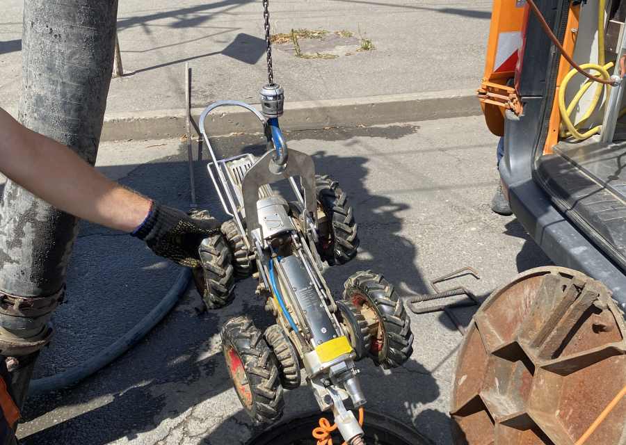 Такий робот може пересуватися трубопроводами різного діаметру, для цього він має змінні колеса різного розміру. Обладнання дозволяє провести телеінспекцію труб діаметром від 100 до 1500 мм. Завдяки системі відеодіагностика труб, можна своєчасно провести ремонт і усунути засмічення, тріщини і розломи в трубопроводах.